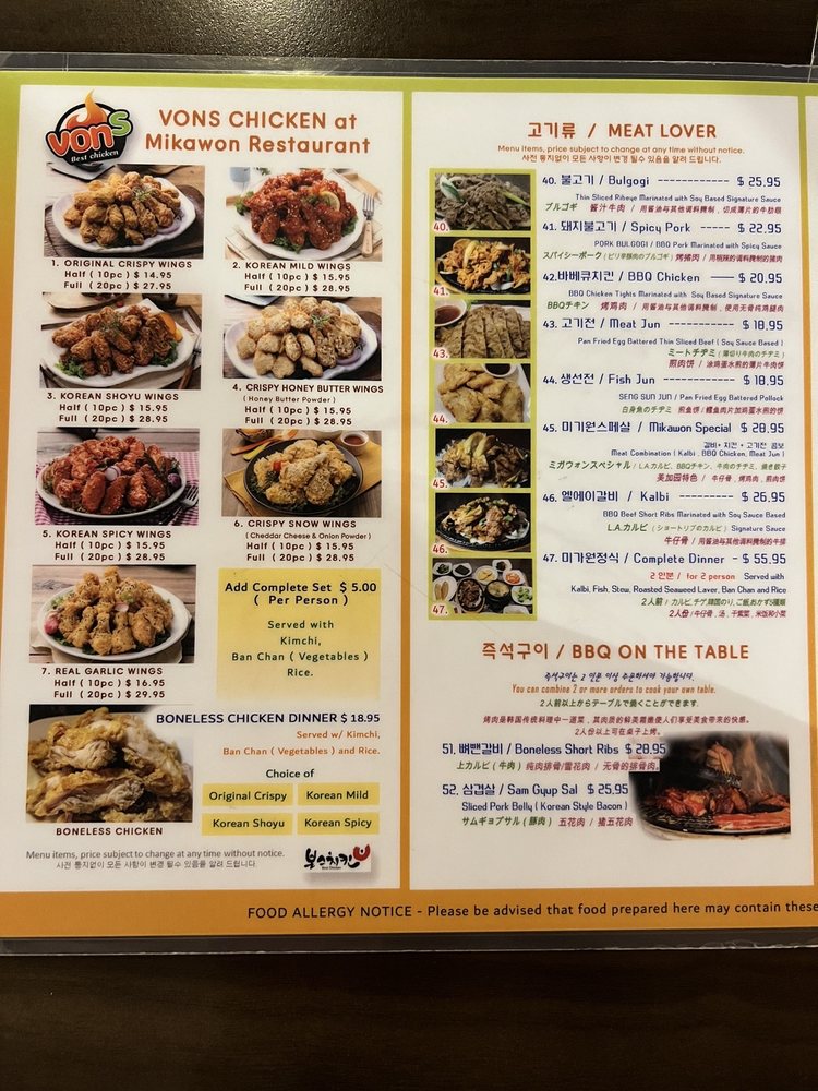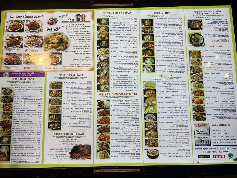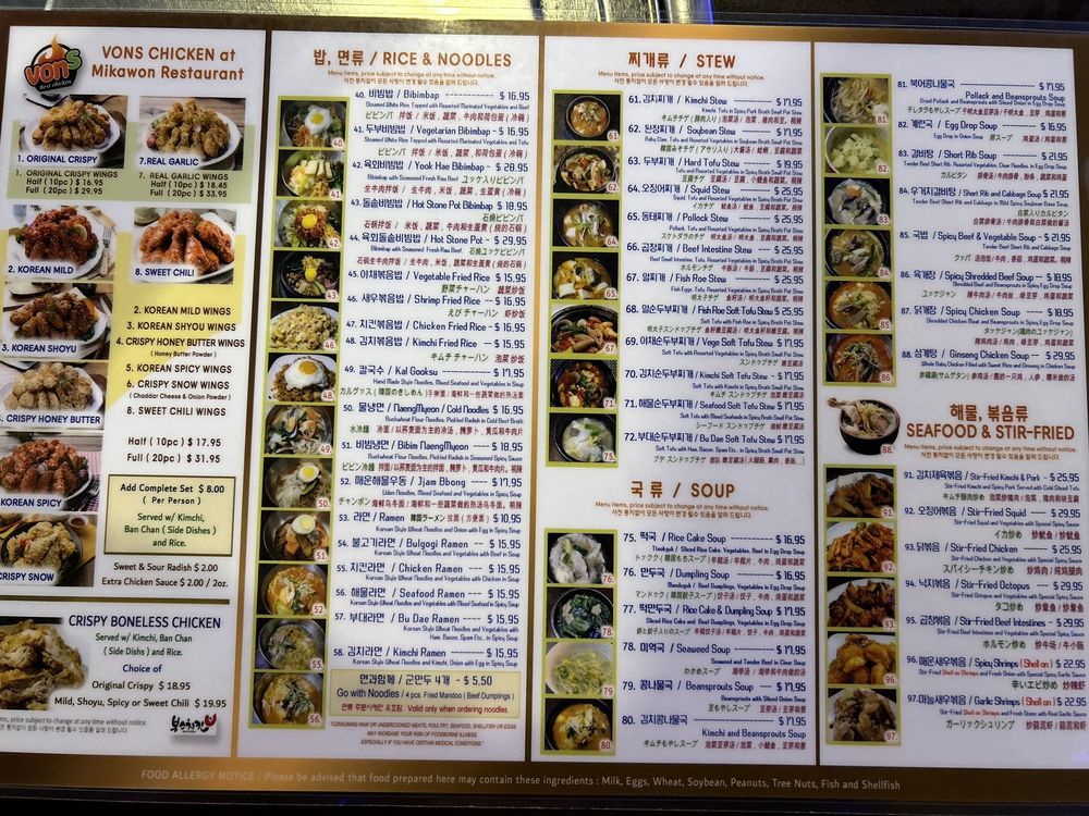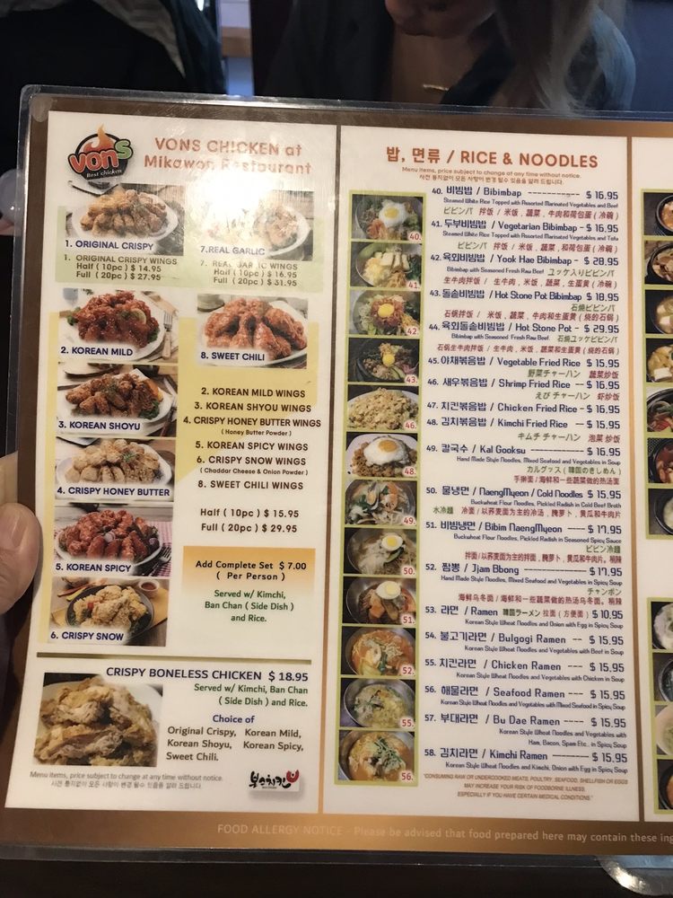 Mikawon & Vons Chicken Menu